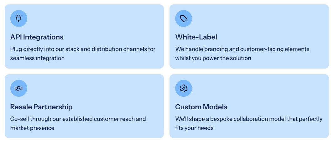 We’ve designed multiple partnership formats to perfectly fit your product’s unique requirements and market approach.